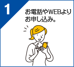 お電話でのお申し込みは、フリーコール【0120-836-056】までご連絡ください。また、当サイトからもお申し込みいただけます。お手続き方法などでご不明な点がございましたら、通話無料・携帯電話からも利用可能なフリーダイヤルへお気軽にお問い合わせください。